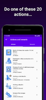 Kaip visa tai veikia? Jannaty supaprastina jūsų dvasinę kelionę, pateikdama aiškų ir prieinamą sąrašą veiklų, mylimų Dievo. Galite rinkti atlygius tiesiog dešimt kartų perskaitę Sūrą Al-Ichlas, prisidėdami prie mečetės statybos, atlikdami papildomas maldas ar aplankydami sergantį tikintįjį. Nuo paprasčiausių žodžių, tokių kaip „Subhanallah" ar „Alhamdulillah", iki gilesnių veiksmų, pavyzdžiui, Korano eilutės studijavimo ar nusižeminimo Kūrėjui – kiekviena užbaigta užduotis fiksuojama Jannaty ir akimirksniu parodo jūsų augantį atlygių balansą. Matykite, kaip pildosi jūsų rūmai, sodai, auga palmės ir daugėja dorybių kalnų.