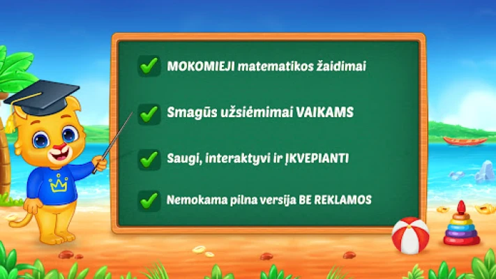 Ar norite, kad jūsų vaikas atrastų skaičių pasaulį ir pamiltų matematiką nuo pat mažens? "Matematika vaikams" yra žavinga, visiškai nemokama mokomoji programa, sukurta specialiai ikimokyklinukams, darželinukams ir pirmokams. Ši interaktyvi platforma paverčia esminius matematikos įgūdžius – skaičių atpažinimą, sudėtį ir atimtį – smagiais ir įtraukiančiais žaidimais. Stebėkite, kaip jūsų mažylis žaismingai lavina savo gebėjimus ir įgyja tvirtą pagrindą būsimam mokymuisi.