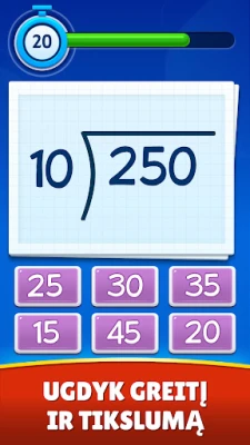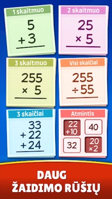 „Matematikos žaidimas" – tai daugiau nei tiesiog žaidimas; tai pagalbininkas, padedantis vaikams išsiugdyti meilę matematikai nuo pat mažens. Nuo darželinukų iki paauglių ir net suaugusiųjų, norinčių išlaikyti savo protą aštrų, ši programėlė siūlo platų užduočių spektrą. Joje rasite skaičiavimo žaidimus, sudėties ir daugybos iššūkius, daugybos lentelės praktikas ir daugybę kitų smagių mokymosi būdų, pritaikytų skirtingoms amžiaus grupėms ir įgūdžių lygiams. Nuo paprastų „plius minus" užduotėlių iki sudėtingesnių dalybos ir daugybos galvosūkių, kiekvienas ras sau tinkamą iššūkį.